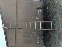 The ladder is 12' long and has 1"id CPVC pipe for rungs. It is held together with a threaded rod at each end for moving into location and then they are removed to allow the full dismantling of the ladder.