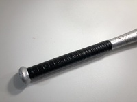 Good looking Halloween prop painted aluminum color with blood splatter. These foam bats are very easy to swing, wont do much damage on the victim and we keep them very accessible in our props room.