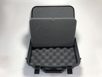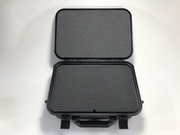 Small hand held black case made of heavy plastic with metal locking latches. Meets the requirements for carrying a firearm in a vehicle without a concealed permit as long as it is locked.