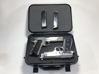 Guns are shown only as a size reference and are not included with the case. However we do have a large selection of non firing prop guns available in our props department.