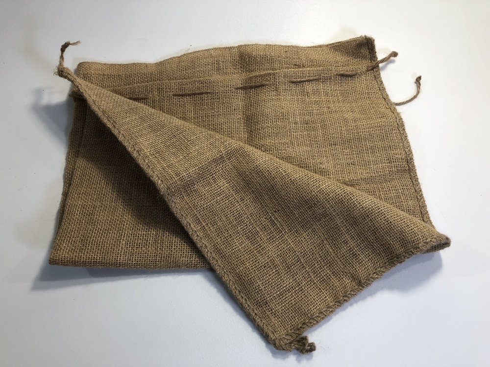 Burlap sack for kidnapping someone or filling with potatoes. This is a small sack big enough to fit on a head but not big enough to do a potato sack race.
