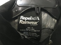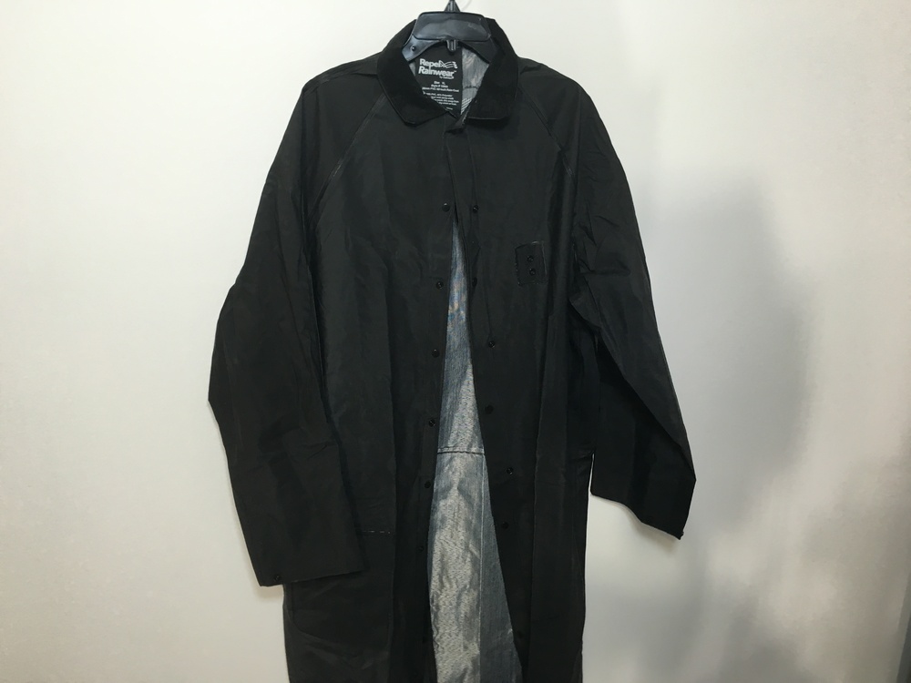 Men's large rain coat with hood. This is a rubberized fabric for use in the rain.