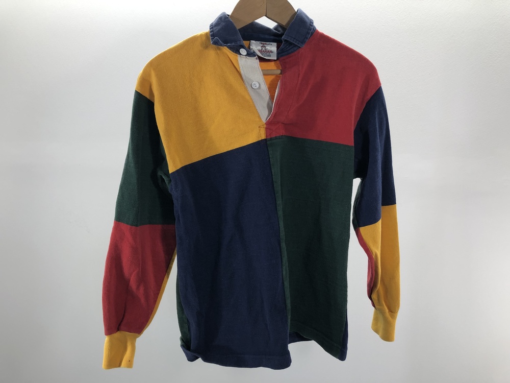 This is an authentic rugby jersey, very heavy fabric, long sleeve in a medium size men's shirt. Just one of the rugby jerseys in our wardrobe department. And by wardrobe department, we mean a rack of clothes, lets not kid anyone, we are not Paramount Studios. But we do have a generous collection of men's and women's clothing, shoes and jewelry so you can outfit your next production.