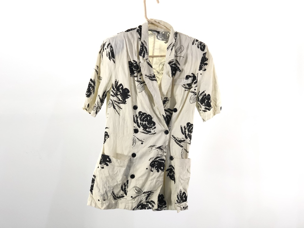 White Button-Up Flower Pattern Shirt and Pants