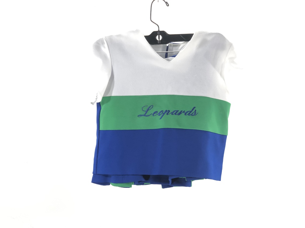 This Leopards Cheerleaders Set, comprised of a shirt and skirt, is designed to inspire team spirit and enthusiasm. Worn by cheerleaders during games and events, it boosts morale and energizes the crowd with spirited performances and choreographed routines. |