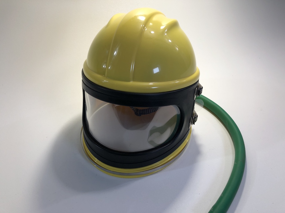 OK, it is not a space helmet, it is a sand blasting helmet with remote air hose that really did not work well as a sand blasting helmet, so our maintenance people gave it to us as a prop.