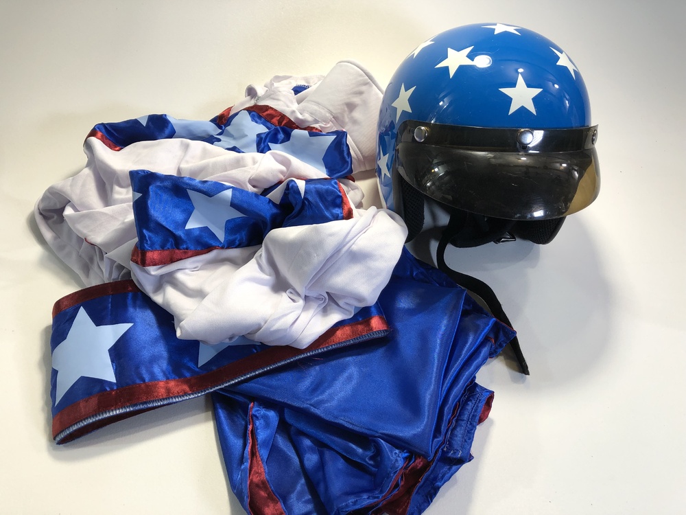 It is not a leather stunt suit but can make a good look for a distant shot if anyone wants to attempt to jump 75 cars on a motorcycle.