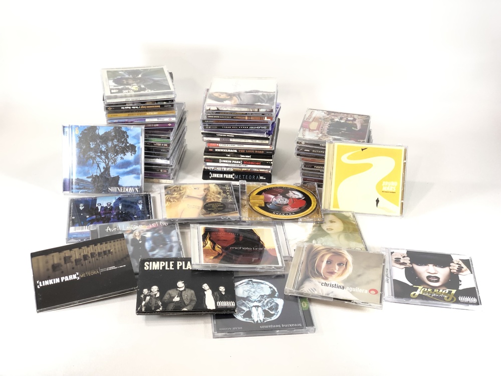 This expansive CD collection presents an ensemble of musical albums encompassing diverse artists like Bruno Mars, Christina Aguilera, Shinedown, Nickelback, Backstreet Boys, and numerous others. Organized within a practical case, this compilation offers a broad spectrum of musical genres, catering to various tastes.