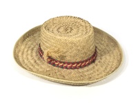 | The straw hat, embellished with a bold band featuring striking red and green stripes, emerges as a visually captivating accessory within cinematic landscapes, inviting unique storytelling opportunities.