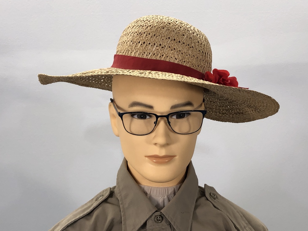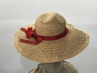 Straw Hat with Red Ribbom and Flowers