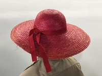 Red Straw Hat with Ribbon