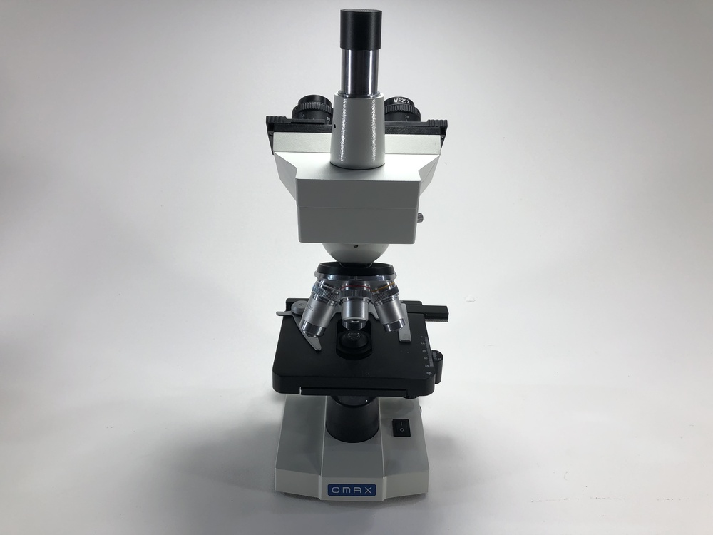This OMAX binocular biological compound microscope offers six magnifications between 40X and 2500X. The lab microscope comes with a 45° inclined 360° swiveling binocular sliding viewing head, two pairs of widefield eyepieces with adjustable diopter on oculars, four achromatic objectives, stain-resistant double layer mechanical stage with scales, coarse & fine focusing on both sides, NA 1.25 Abbe condenser with iris diaphragm and variable intensity LED transmitted illumination system. This type of microscope is perfect for home school, teaching, demonstration, clinical examination, laboratories and advanced applications. It is easy to mount an electronic eyepiece (digital microscope camera) for capturing images and live video on computer. It can also be added a darkfield condenser to switch a brightfield microscope to a darkfield microscope.