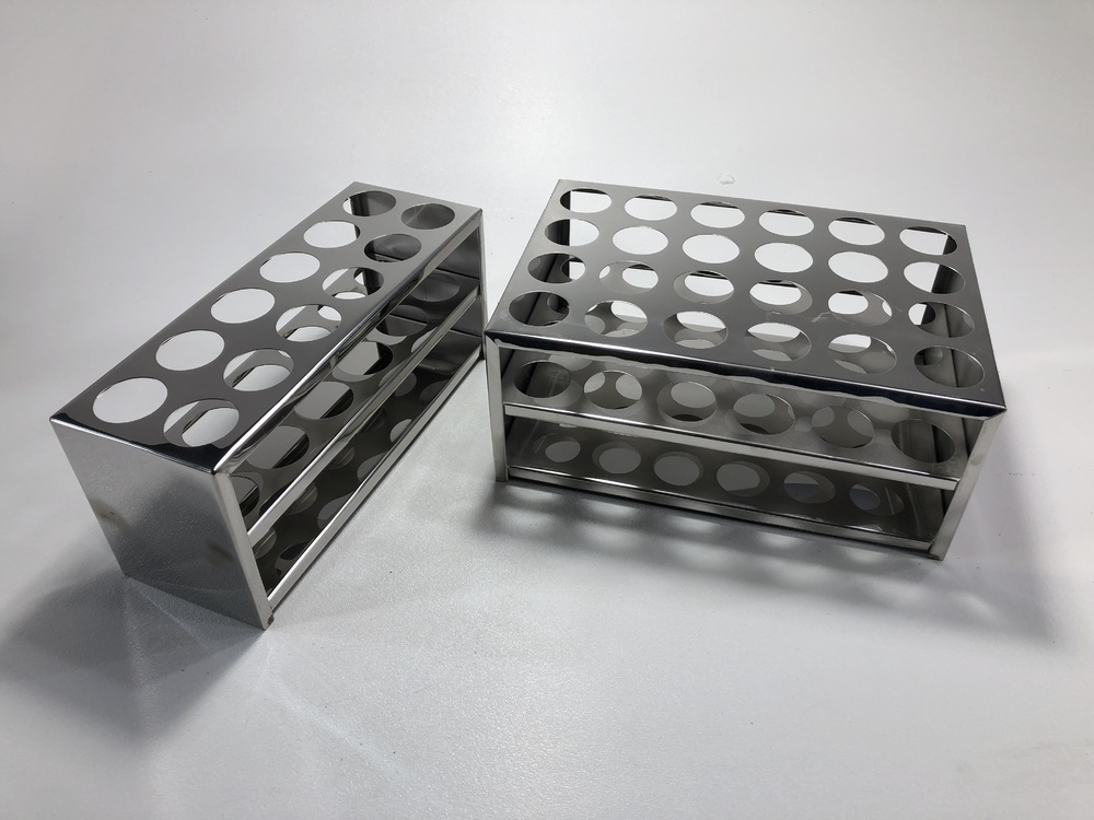 50ml Stainless Tube Racks are used to store 50 milliliter centrifuge tubs in a lab. The tuns are common used to store samples, reagents and separate compounds using centrifuges.