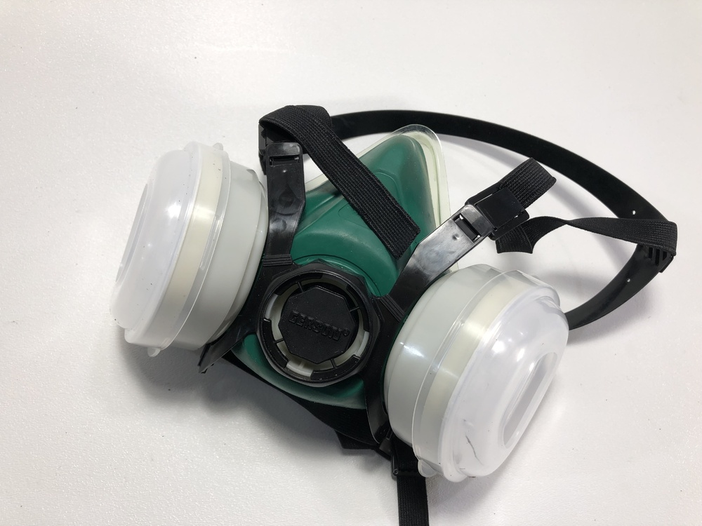 This generic half face gas mask respirator is nice in a green color. Good contrast with a yellow rain suit or hazmat suit, can be work inside a hazmat hood.