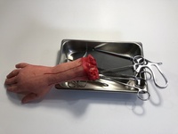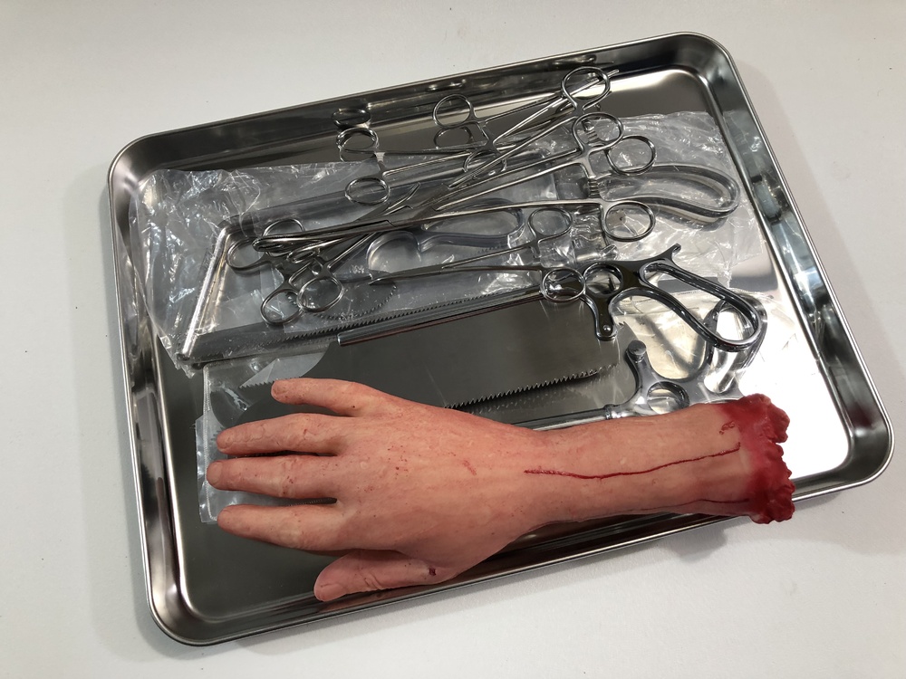 What would a movie studio be without some hospital trays and scary surgery implements. We have bone saws, we have scalpels, forceps, scissors and even a few body parts for effect.