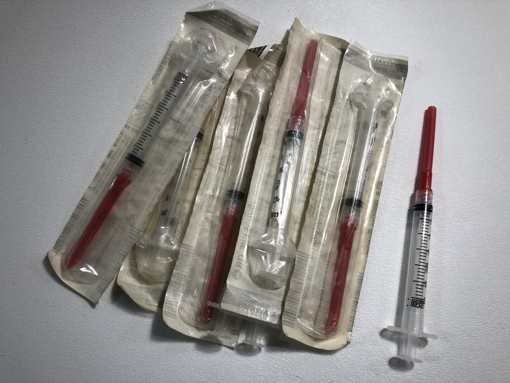 These are the same as medical syringes, but the have blunt tipped needles which are a bit safer in the hands of actors and actresses. They look the same but these are used to get lubricants to bearings and hard to reach surfaces.