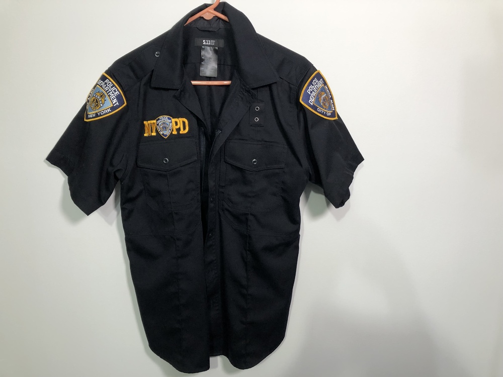 This is a 511 Tactical PDU blue shirt with NYPD patches in size medium.