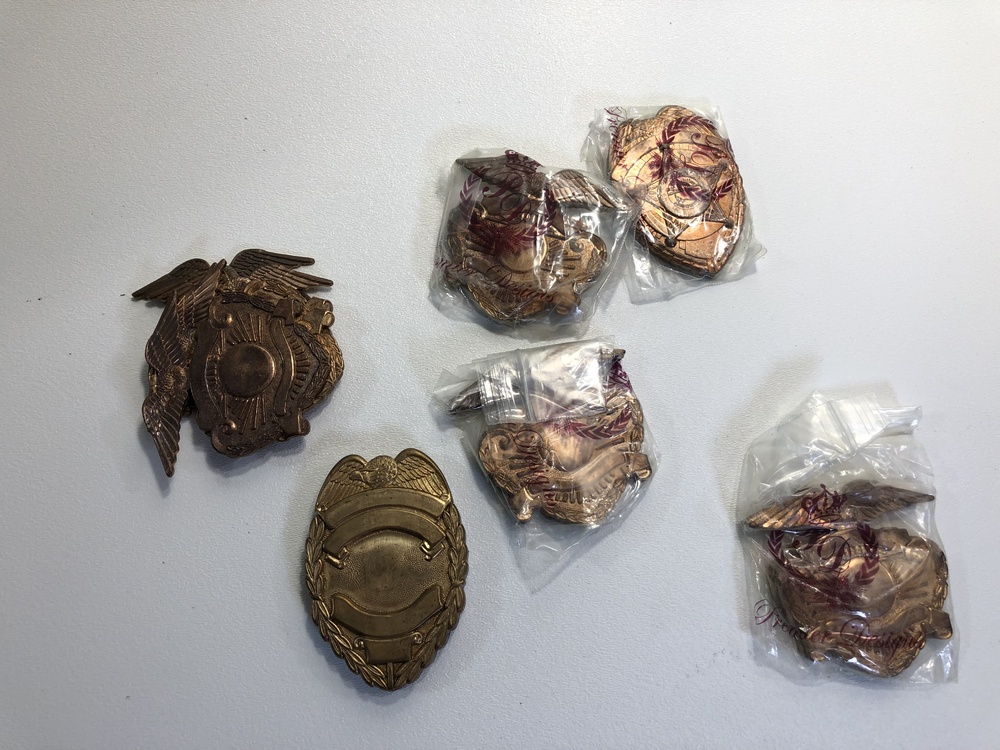 We have several Unfinished Police Badges that are brass and can be painted silver or gold and painted on with badge numbers or municipalities.