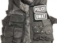 This is a real police vest with both SWAT and POLICE labels attached by velcro. The labels can be removed, swapped or changed.