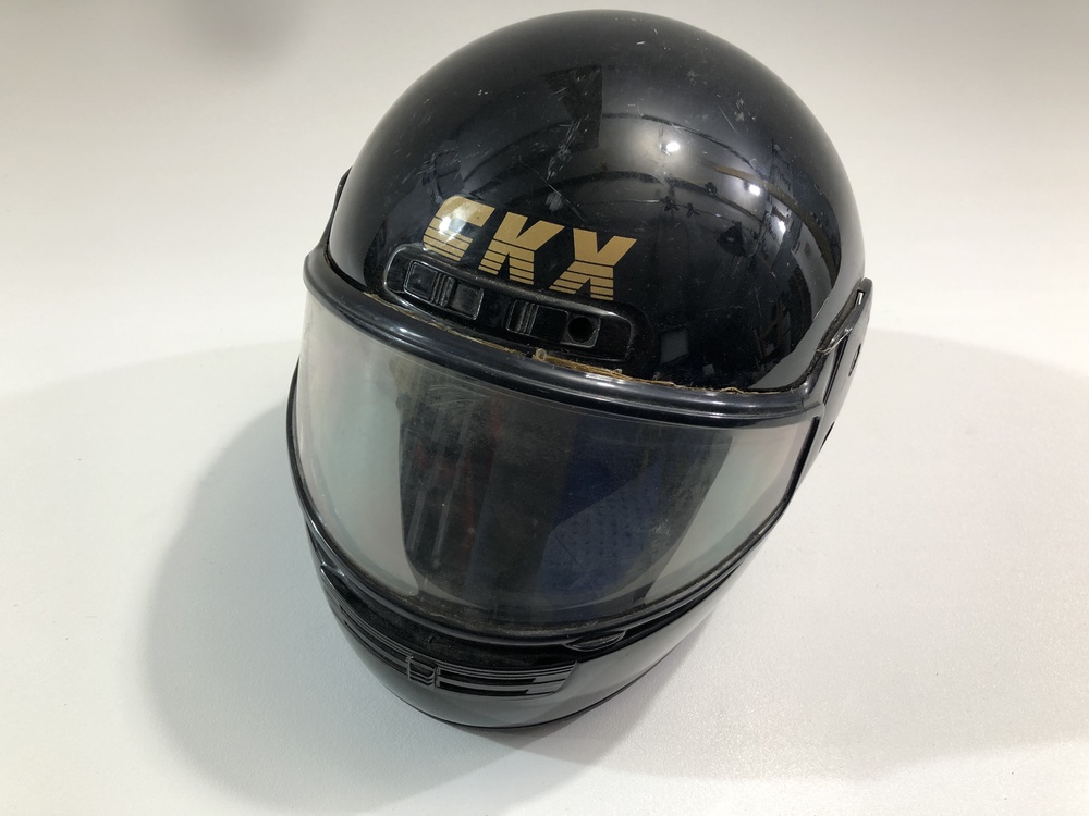 The helmet is black with gold accents, it is worn or shall we say well used. It would be OK to use for stunts or long shots or if you are not worried about the character having a band new shinny helmet. Inside fabric is faded but functional.