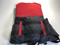 These are 2 off brand red adult size PFD's that are coast guard approved.