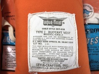 These are the real deal, vintage life vests from the 1960's. They are fabric with cotton straps and metal D-rings. This is what everyone would wear on a boat before the newer jackets were developed.