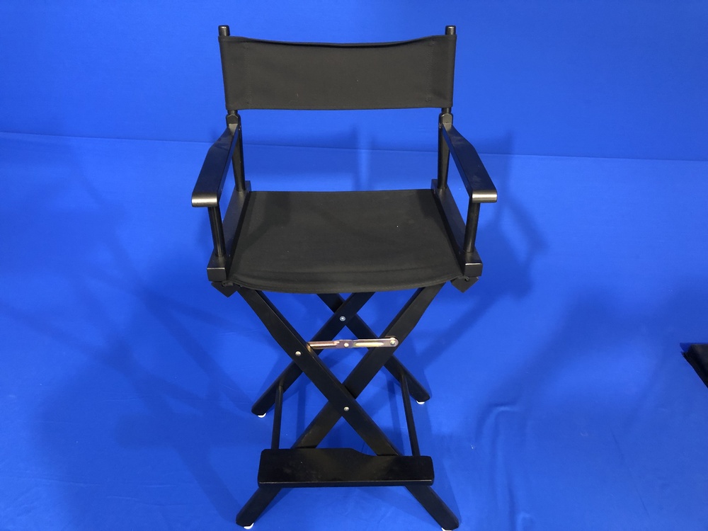 This is the classical director's chair for movie sets. Tall canvass seat and back. Does not have any embroidery, just plain and generic for use any any movie set where you want teh director in a tradition chair.
